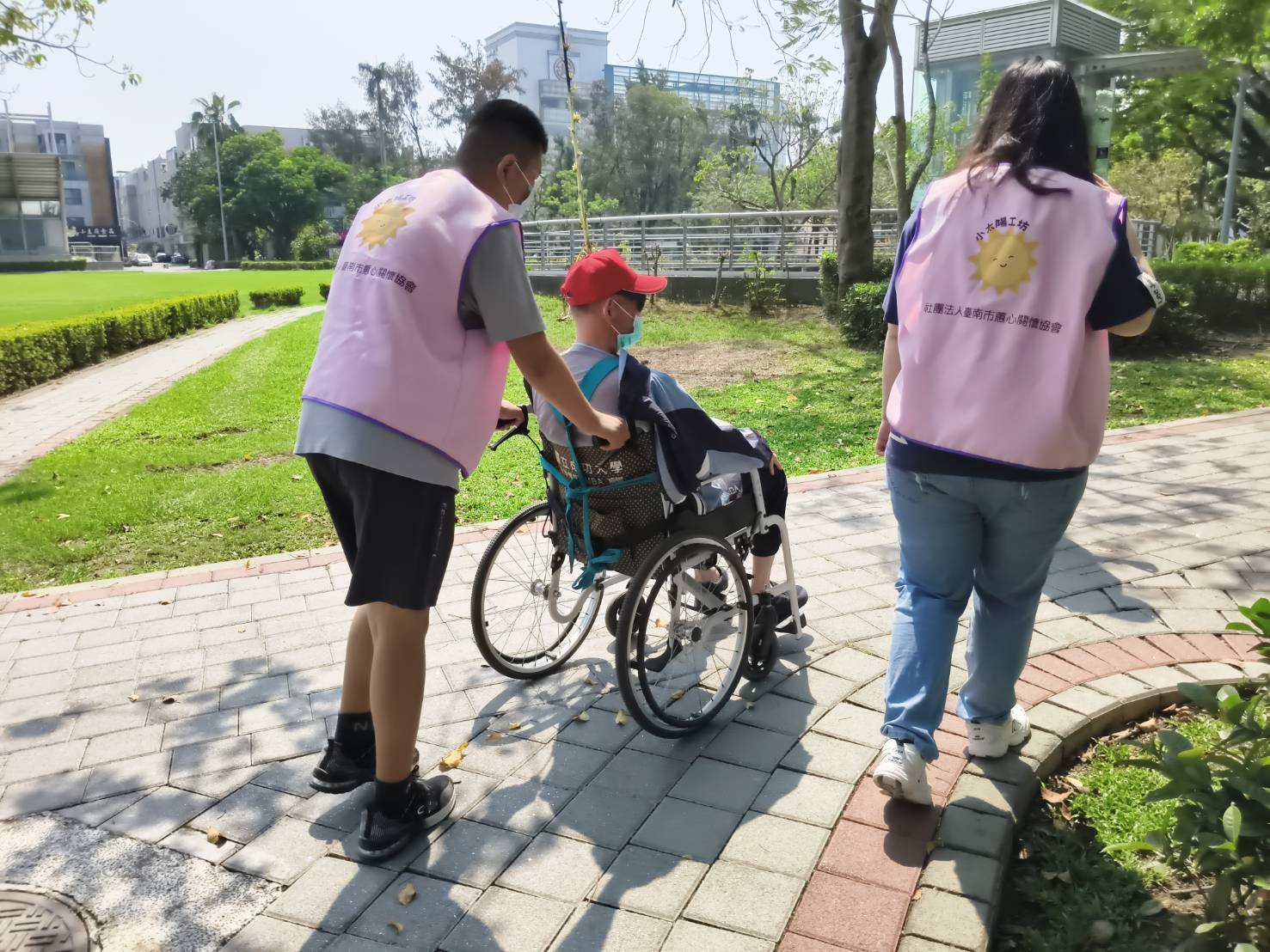 除了日常訓練外,小太陽工坊積極連結在地資源,與工坊附近長照機構合作推動代間交流服務,每週固定安排服務對象陪伴長輩至戶外散步、曬太陽及聊天互動,透過實際的「助人」經驗,不僅促進長者身心健康,也讓身心障礙者在過程中建立自信與責任感。