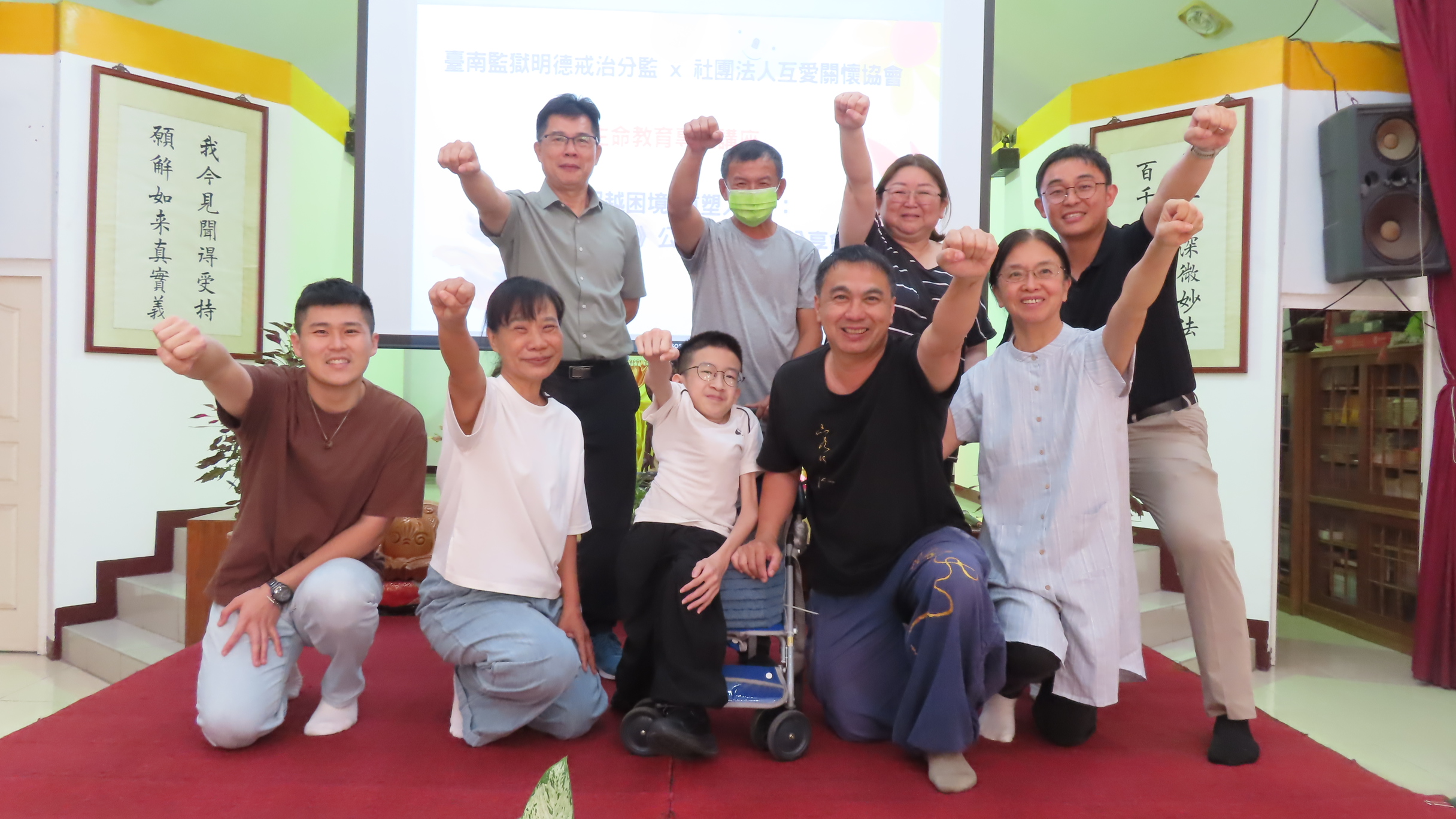 王志揚老師亦感性地提到:「只有自己做得到的事,就叫做『使命』。」他鼓勵現場收容人,每個人心中都有一件「隱形披風」,對他而言是書法與善念,而對於正在服刑的收容人來說,這件披風可以是對家人的承諾,或是對未來的重新想像,他強調,人生的每個階段都有不同的困境,但「以善養生」,將內在靈魂化為前進的動力,就能在荒蕪的生命中開出不一樣的花。
