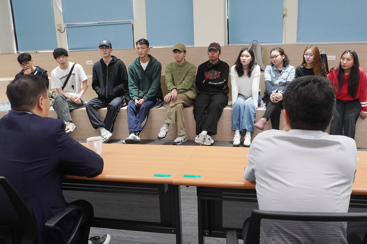 Mr. Ulziibat ALTANDUSH副代表與蒙古籍學生面對面座談,了解學生在學習與生活上的適應情形,學生們分享在大葉大學的求學經驗,蒙古學生、英語學系大四的Timo說,台灣對外國人士很友善,而且生活環境與學習資源都很好,因此選擇來台灣留學,他感謝大葉大學提供獎學金以及多元的課程與活動,讓他的大學生活精彩充實,未來如果有機會,他想留在台灣工作。