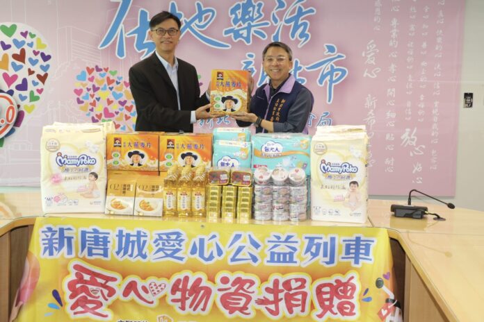 ▲新唐城依據社福中心服務案家的實務需求,捐贈膳食調理包、嬰幼兒尿布、麥片、罐頭、沙拉油等民生物資,合計市值10萬元。(圖/新北市社會局 提供)