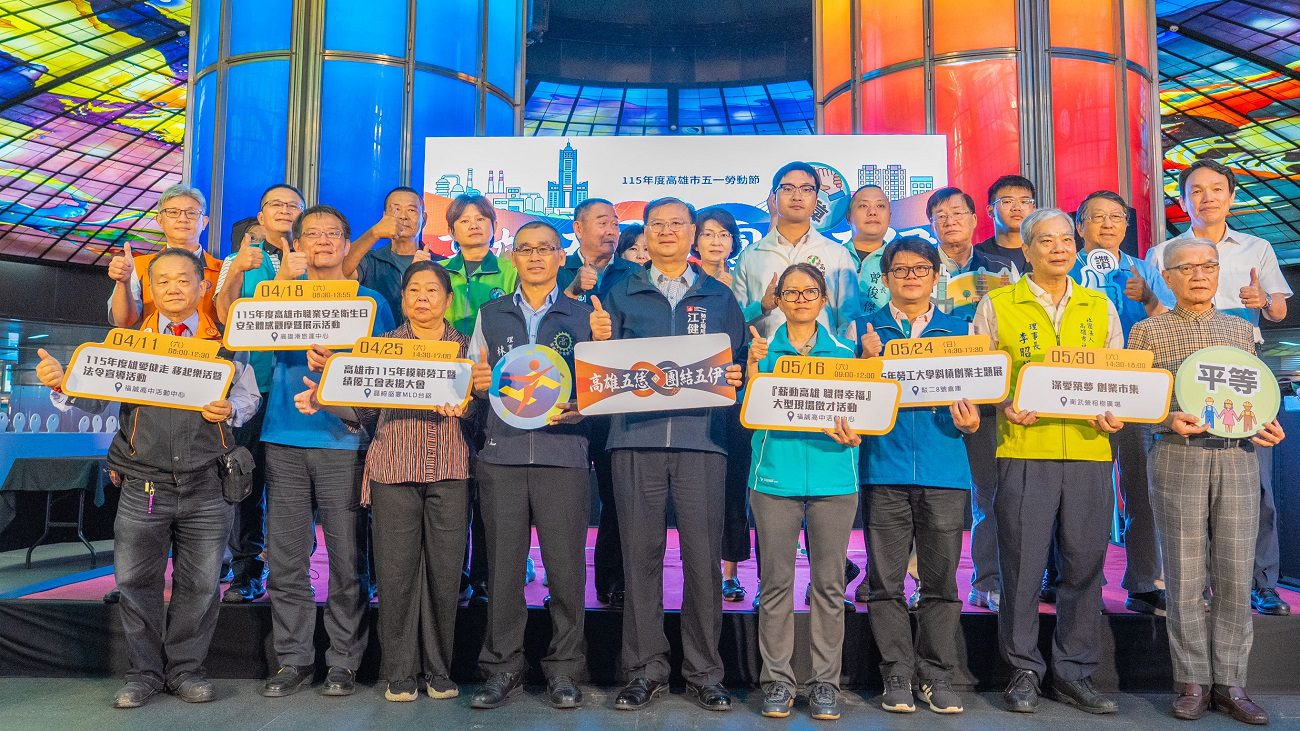 隨著五一勞動節腳步逼近,高雄市提前展開一系列以勞工為核心的活動規劃,從職場安全、就業媒合到創業支持,全方位呈現對勞動價值的重視。高雄市政府勞工局今(10)日上午於美麗島捷運站光之穹頂舉辦年度記者會,正式宣告「高雄五恁・團結五伊」勞動節系列活動啟動,邀集各工會與各界代表共同見證,為為期近兩個月的活動揭開序幕。
