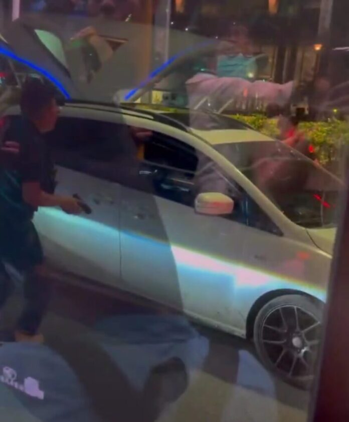 台中警方攔車掏槍敲車窗逮人。翻攝畫面