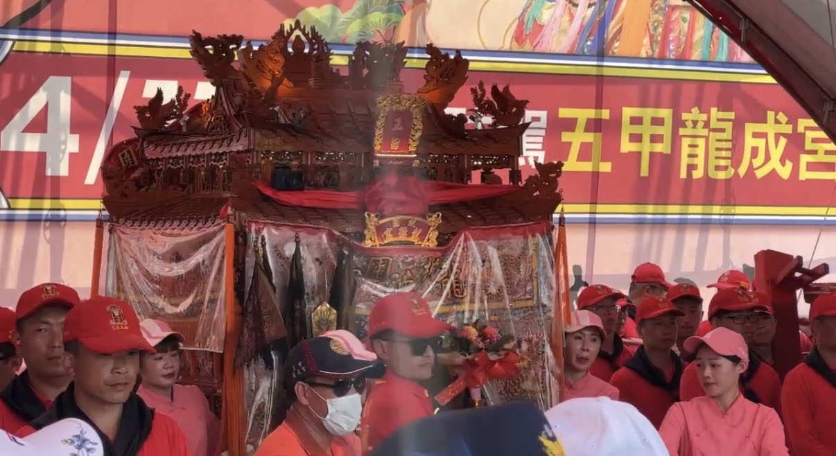▲五甲龍成宮在鳳凌廣場舉辦盛大的接駕儀式。(圖/翻攝畫面,下同)