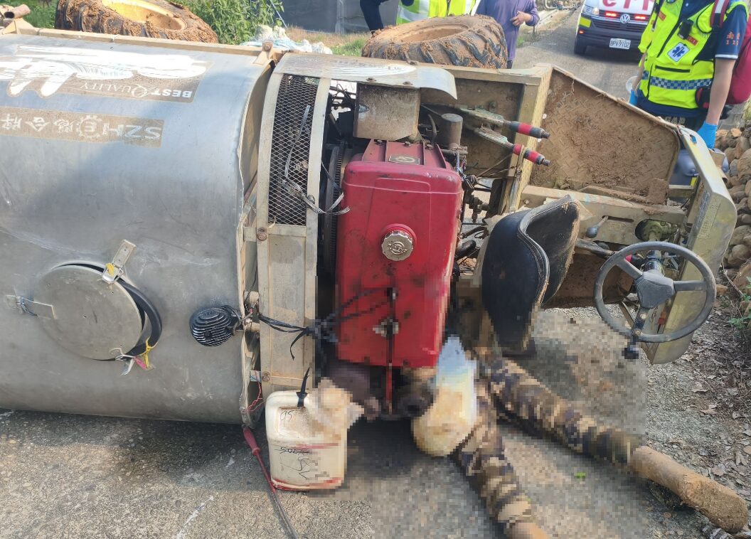 埔里外籍移工被翻覆農用噴藥車翻覆OHCA。翻攝畫面
