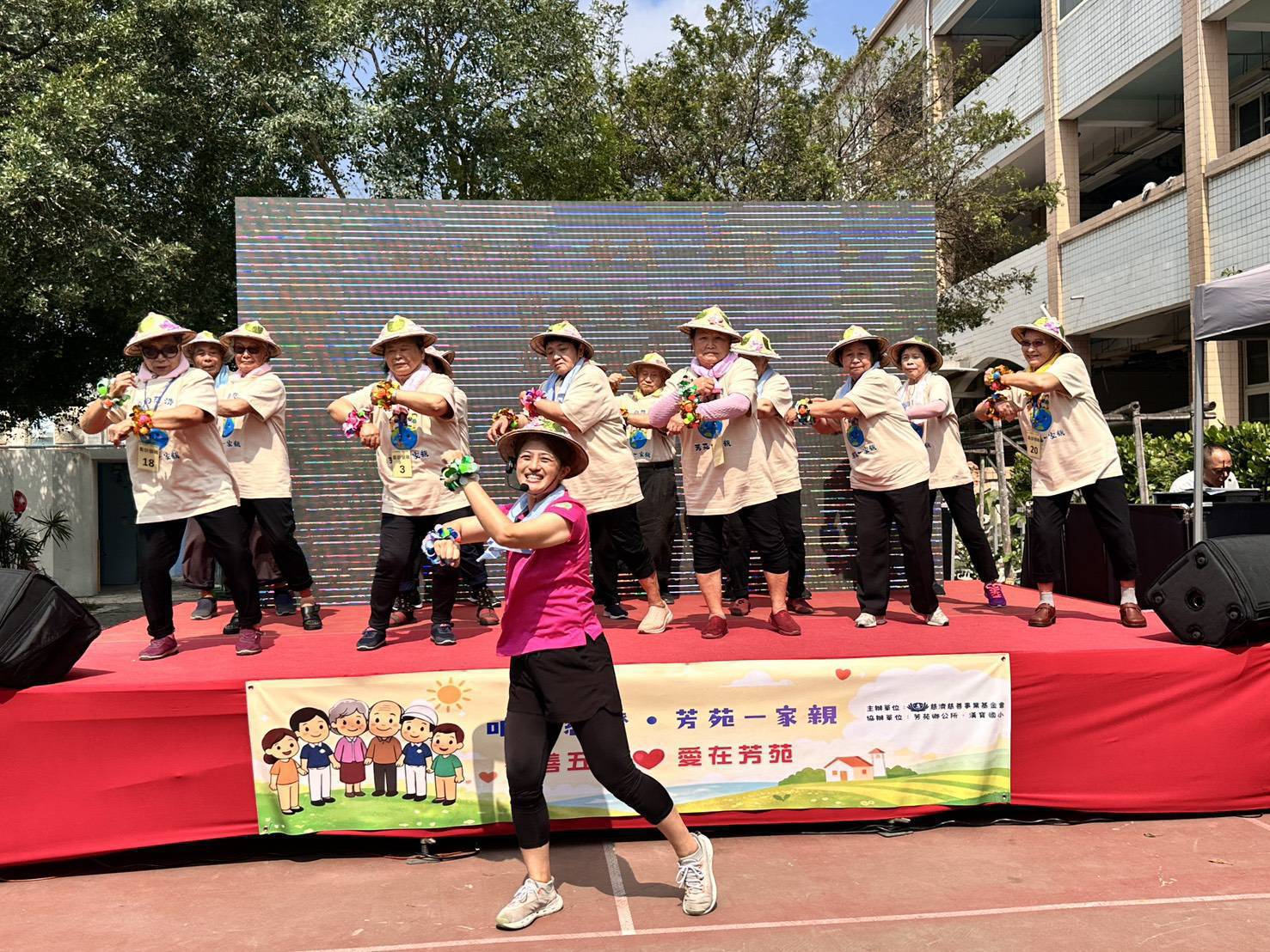 現場也安排社區長輩才藝展演,長者們自在登台、賣力演出,展現出長期陪伴下累積的自信。隨著歌曲律動響起,志工與鄉親共融起舞,笑聲在校園中流動。活動尾聲並發送蔬食餐盒,與鄉親分享蔬食的喜悅。五年的腳步已在芳苑深扎,從最初的陌生到如今如同家人的互動,慈濟未來將持續結合在地力量深化服務,讓守護與關懷在海風中延續,走進更多人的日常。