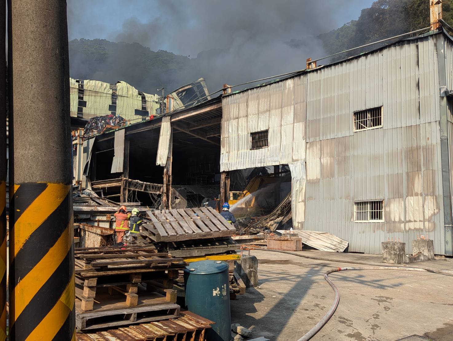五股鐵皮工廠火警火勢兇艋延燒將近12小時。翻攝畫面