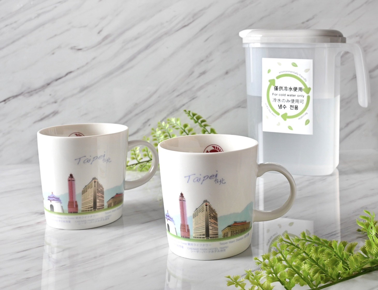 ▲台北凱撒大飯店客房內不再主動提供瓶裝水,改以環保水瓶與水杯,實踐「行動有你,地球有力」。(圖/台北凱撒大飯店提供)