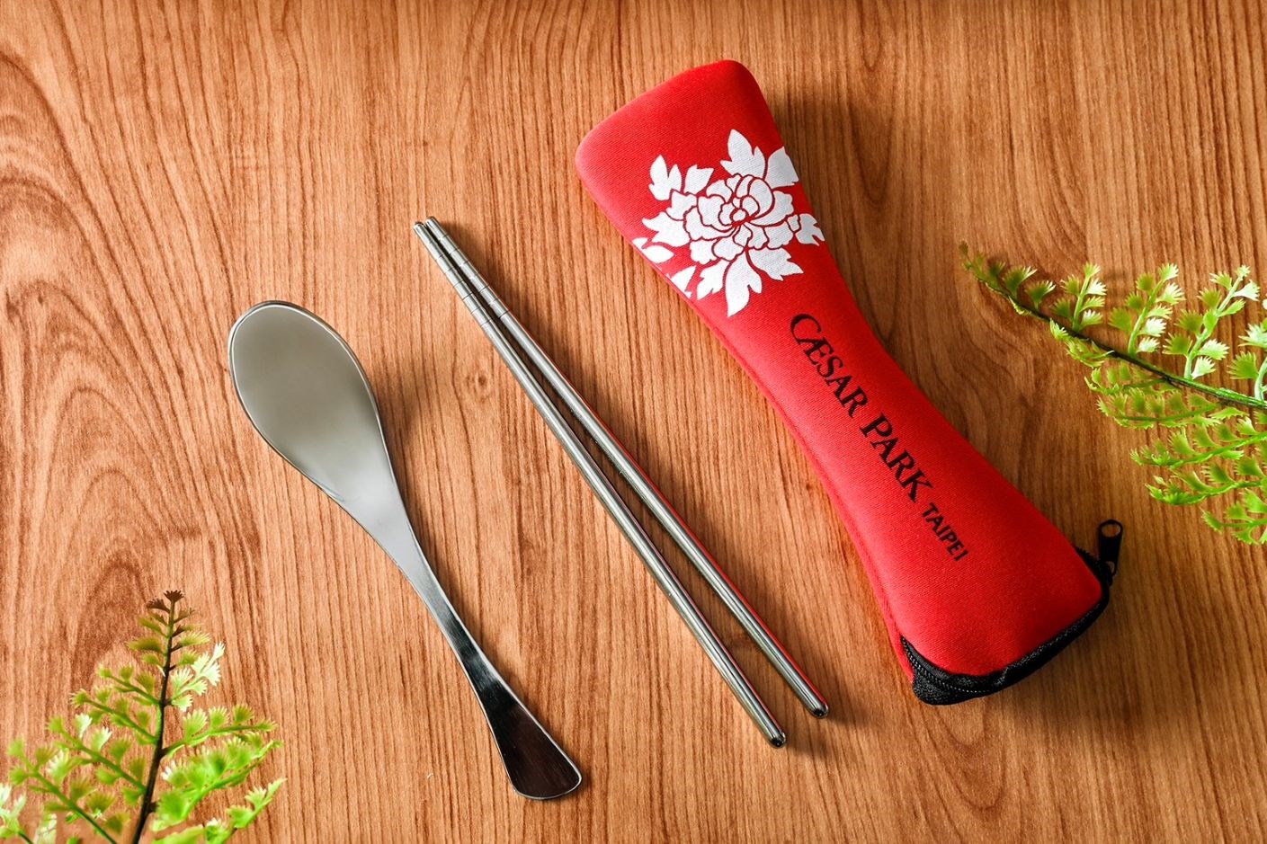 ▲4月底前入住台北凱撒大飯店「永續美好 漫遊台灣 低碳環保住房專案」,即可獲贈世界地球日好禮「環保餐具組」。(圖/台北凱撒大飯店提供)
