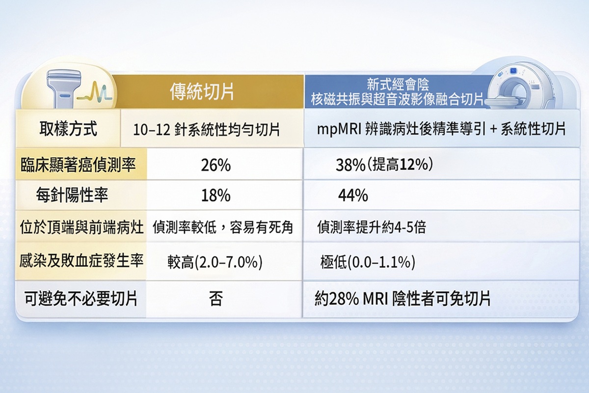 林奇柏醫師進一步說明,新式切片多採會陰途徑進行,相較於傳統經直腸切片,可大幅降低感染風險,整體安全性較高,且術後恢復快、對日常生活影響較小,對於高齡或合併慢性疾病的患者而言,是相對合適的檢查方式。