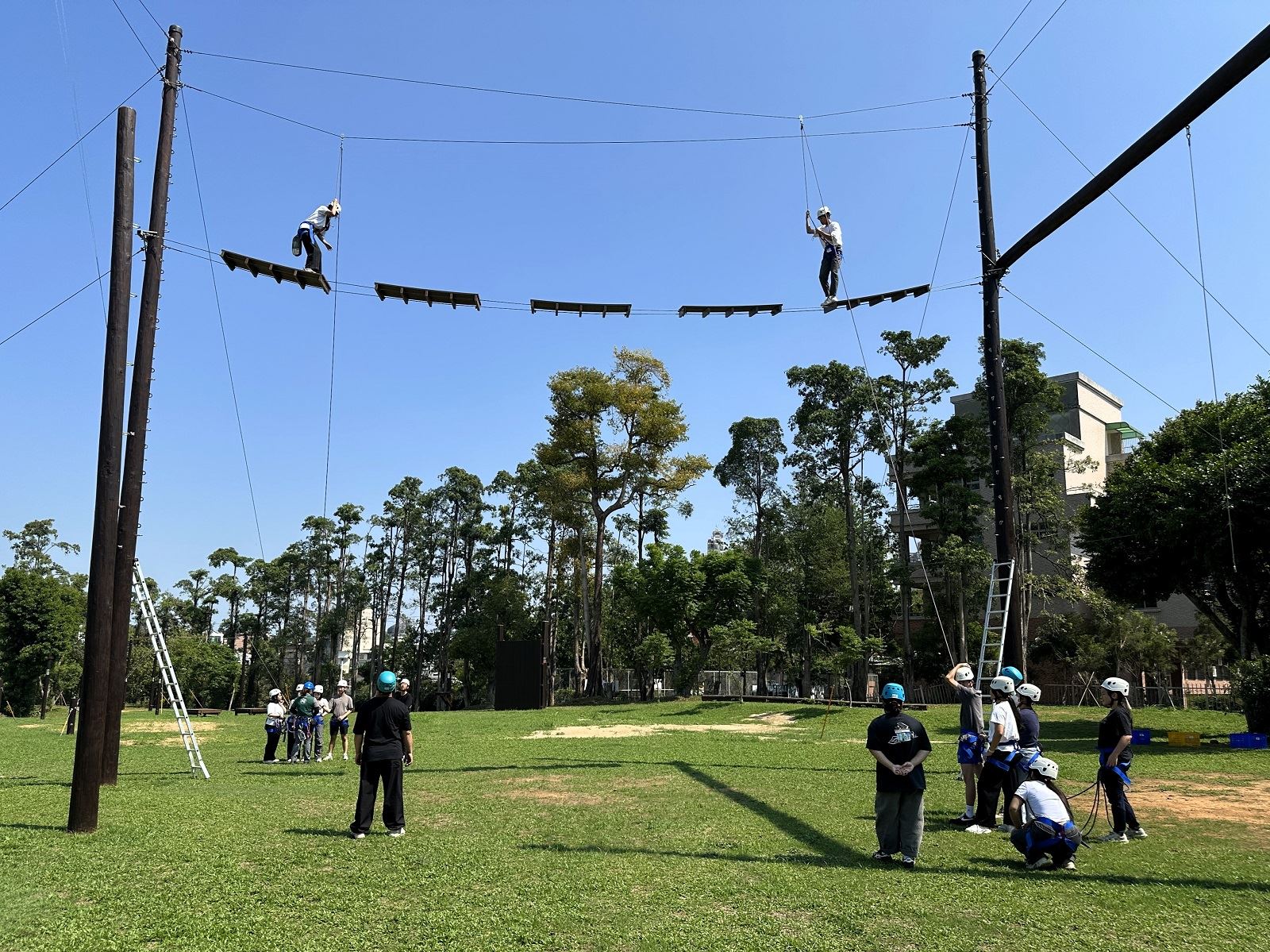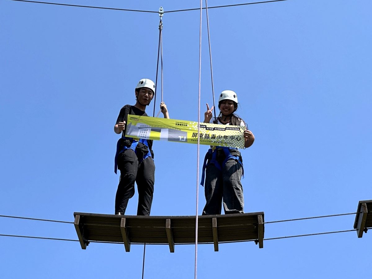 【記者范家豪/屏東報導】 14 位來自屏東各地的青少年,在搖晃的高空獨木橋上面對挑戰時,這已不僅是體力的考驗,更是信任與合作的實踐練習。屏東縣第十三任兒童及少年代表自年初上任以來,已建立穩定的互動基礎;為增進未來合作默契,屏東縣政府社會處青少年中心於 4 月 11、12 日,帶領代表們展開進階探索教育。比起單純的口令配合,過程中更多是對不同想法的磨合與嘗試,這種在磨練中產生的理解與包容,正是未來參與公共議題、討論不同意見時,最需要的合作精神。
