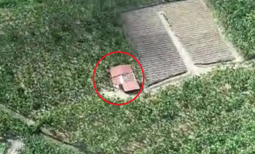 藏身於樹林間的製毒工廠(紅圈處)。翻攝畫面