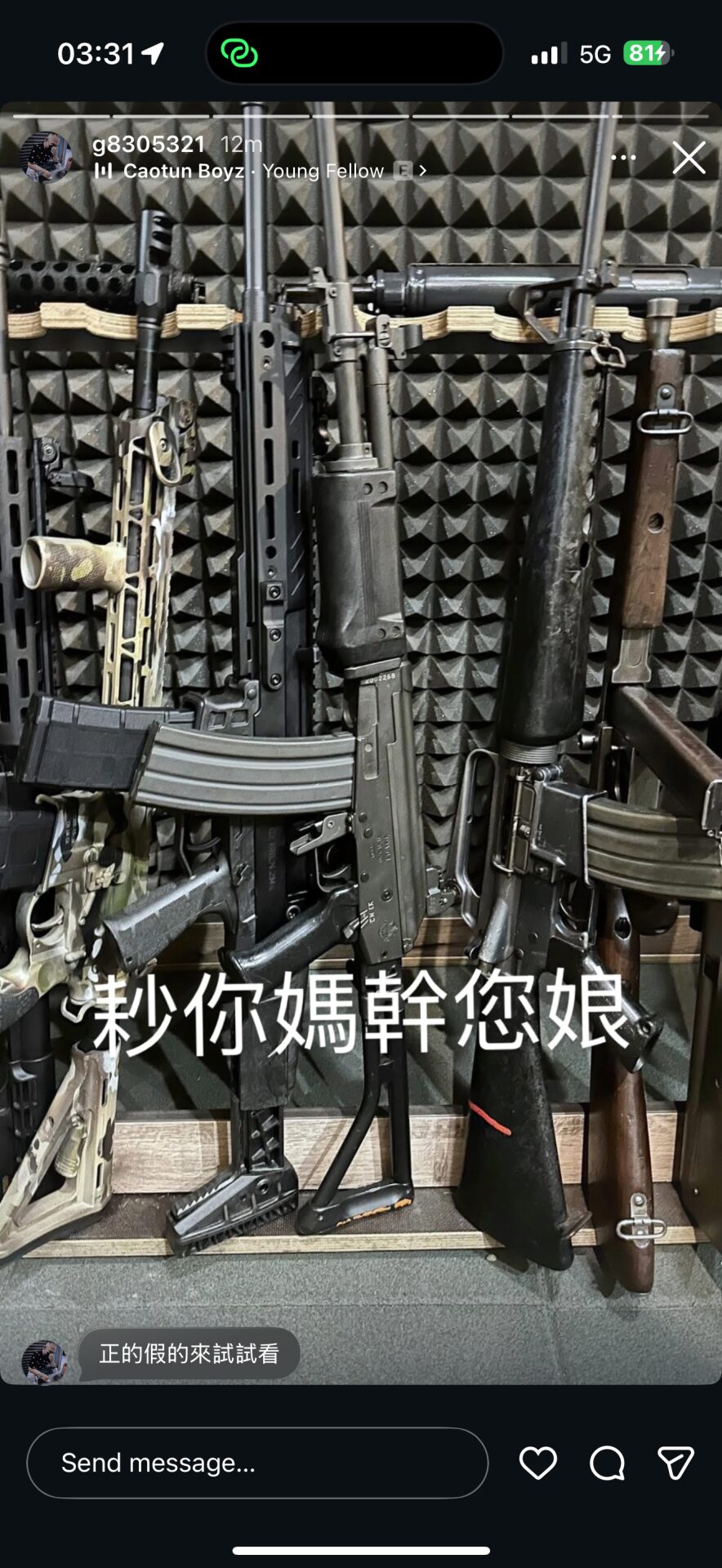 吳姓男子在網路PO槍支照及恐嚇言論。翻攝畫面