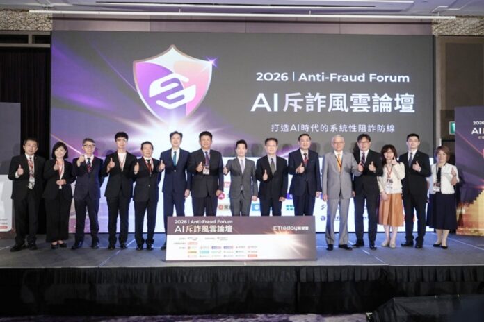 ▲「2026 AI斥詐風雲論壇」邀集產業重量級代表,從不同領域切入AI詐騙風險與應對策略,特邀總統府副秘書長何志偉(置中者),(由左至右)銘傳大學犯罪防治學系助理教授林書立、國泰金控公關發展部協理蔡隸亞、台中商業銀行副總經理林劍洪、蝦皮購物法遵部部長許敦凱、永豐銀行董事長曹為實、金融監督管理委員會副主任委員陳彥良、內政部警政署副署長李文章、法務部政務次長黃謀信、刑事警察局副局長林故廷、台灣房屋集團首席副總裁周鶴鳴、中國信託公共關係部副總經理王韋凱、ETtoday新聞雲總編輯林妏純、中華航空公關室廣告事務部專案主任霍守威、永豐銀行副總經理張瑜娉等各政府機關與企業代表出席。(圖/業者提供)
