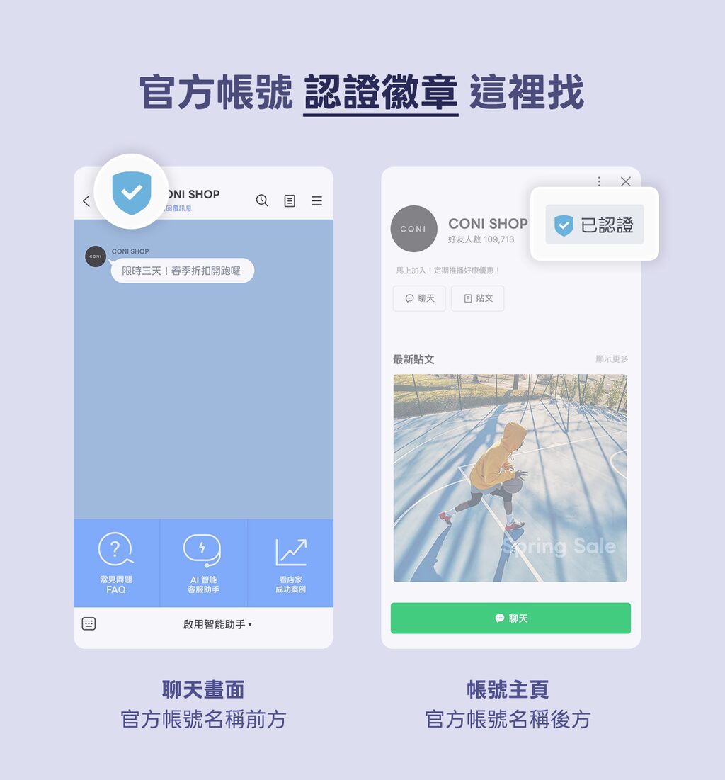 LINE也特別點名常見詐騙手法,有些假帳號會在名稱或個人狀態欄位直接打上「已認證」字眼,企圖矇騙不細心的用戶。LINE提醒,官方認證徽章只會出現在帳號名稱旁邊與官方主頁固定位置,如果只看到文字說「已認證」卻找不到盾牌圖示,那就要馬上提高警覺,別急著點連結或轉帳。