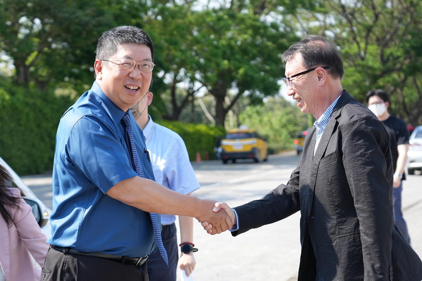▲台大醫院參訪團隊與樹人醫專代表團於多功能活動中心前合影。(圖/翻攝畫面)