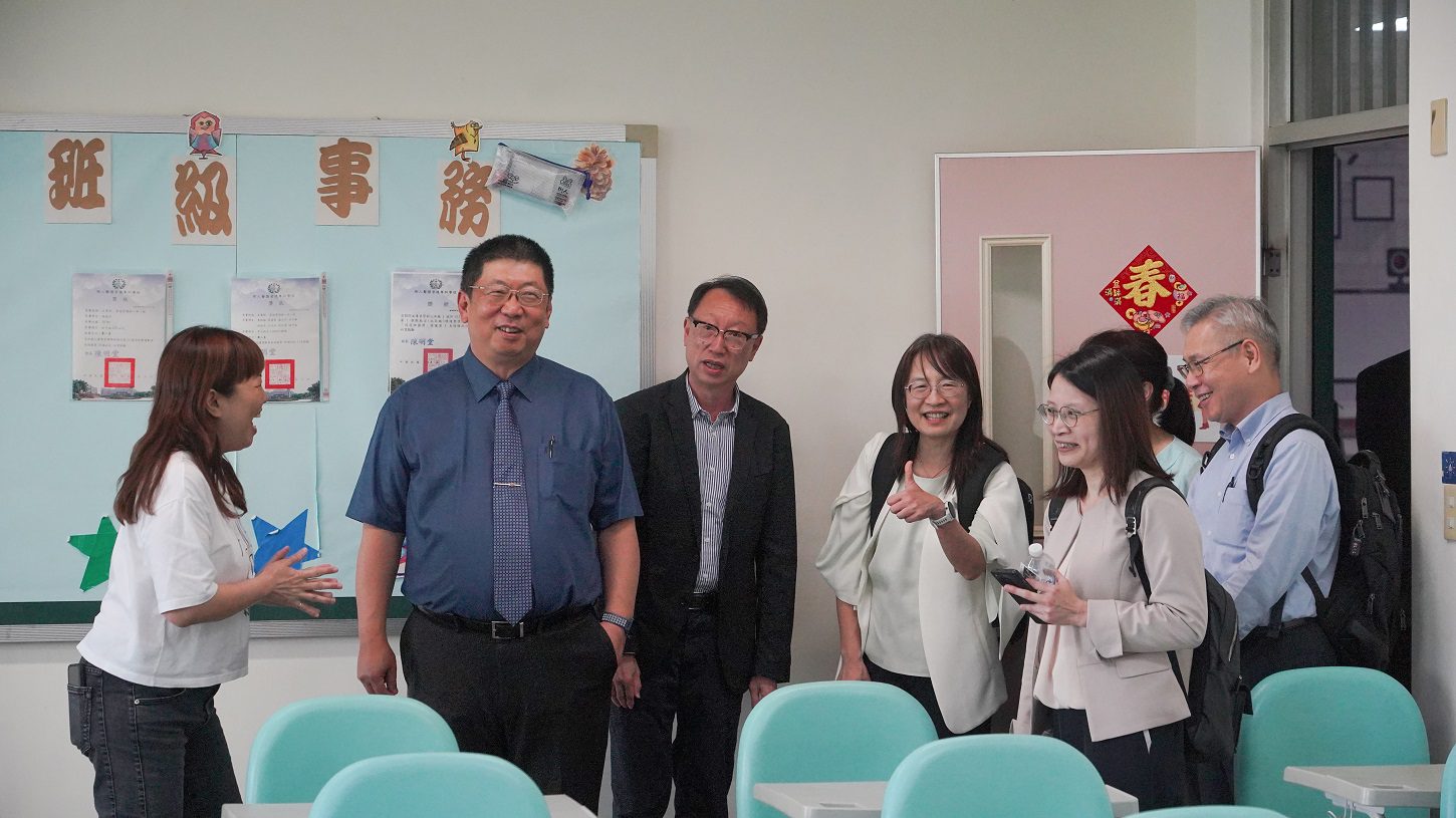 ▲台大醫院副院長張志豪(左2)與教學部陳慧玲主任(右4)等醫療團隊參觀樹人醫專教學區。(圖/翻攝畫面)