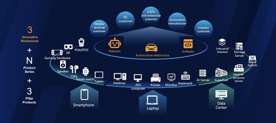 2025年華勤技術實現營收1,714.4億元人民幣,同比增長56.0%,歸母淨利潤40.5億元,同比增長38.6%。公司構建了「3+N+3」智能產品平台。3大核心業務:智能手機、筆記本電腦、服務器構成穩健收入;同時形成智慧生活、商業數字生產力、數據中心全棧基礎設施的N多產品組合,如智能穿戴、打印機、AIoT、交換機等。3大創新業務汽車電子、機器人、軟件開闢新增長曲線。公司是全球唯一同時在智能手機、平板電腦、智能穿戴、筆記本電腦和數據基礎設施五大領域建立領先市場地位的ODM廠商,2024年全球消費電子ODM出貨量第一,市場份額22.5%。