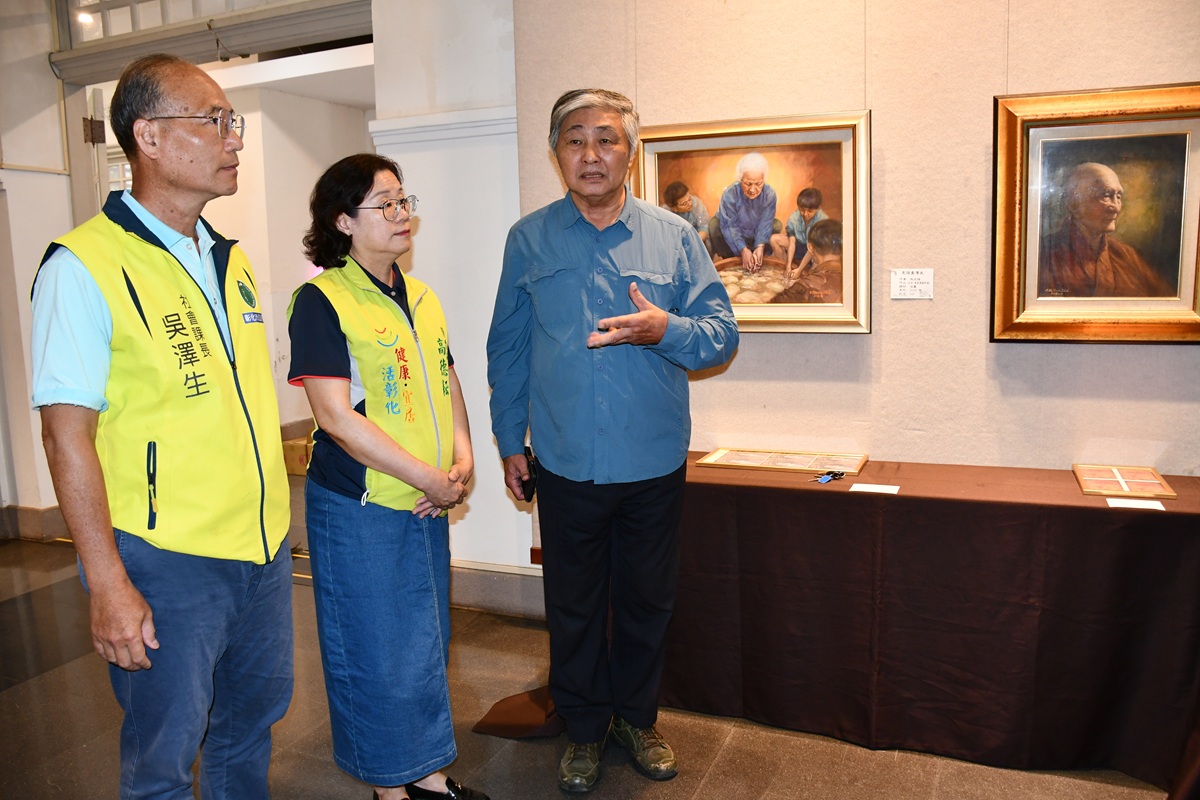 彰化藝術館推出「見證臺灣史」施並錫教授作品展,共展出29幅精選畫作,透過作品帶領觀者重返1947年「二二八事件」的歷史現場。(圖/記者蕭麗鳳攝)