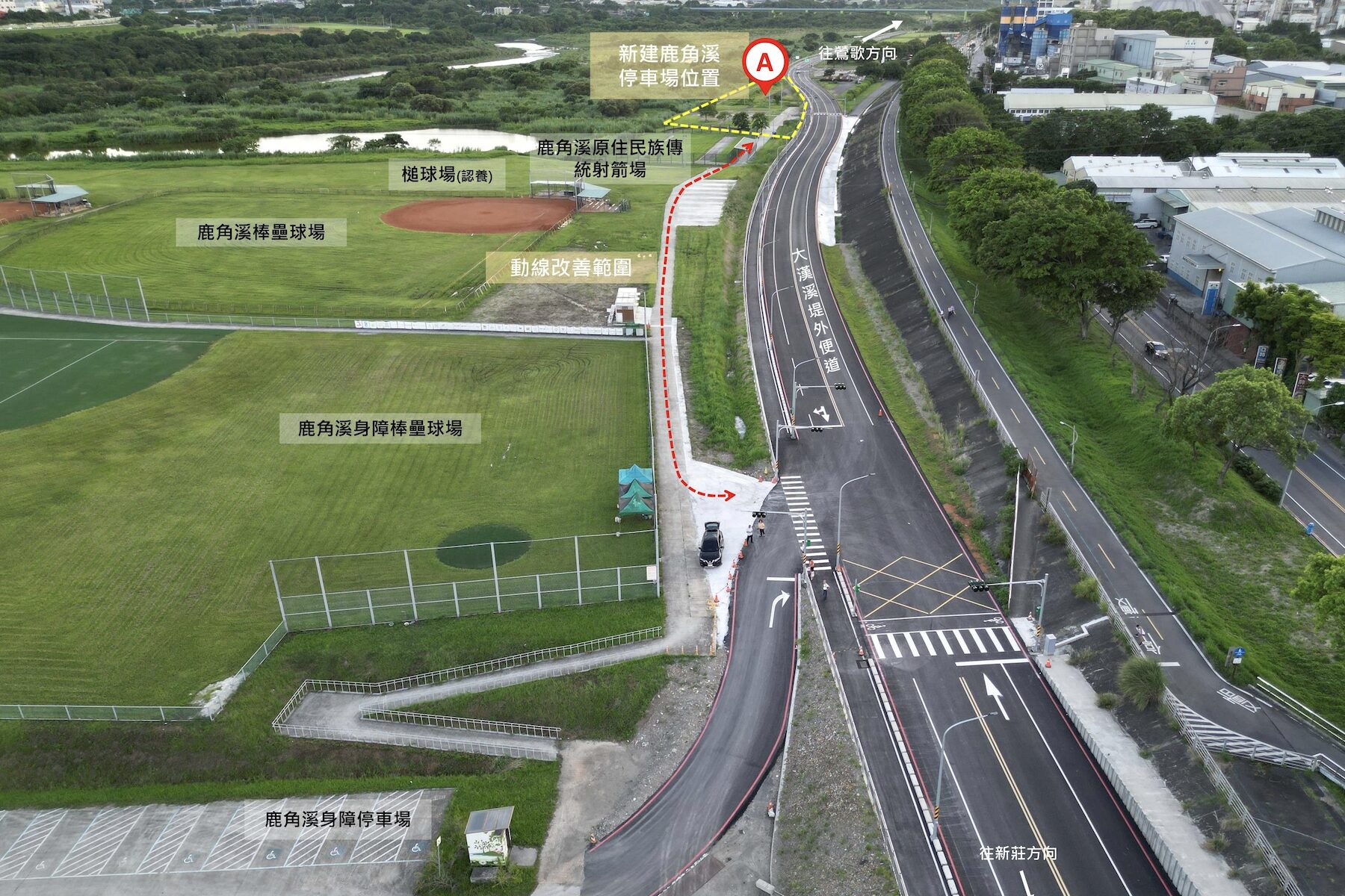 高灘處處長黃裕斌表示,鹿角溪越堤道周邊設施豐富,包含:原住民射箭場、棒壘球場、鹿角溪人工濕地及114年底全新完工之鹿角溪棒球場等,是深受市民喜愛的多元遊憩場域。然而,隨著大漢溪堤外便道開通,既有動線與新路網產生疊合,導致部分區塊進出不便且停車位略顯不足,為此,高灘處積極規劃重新配置服務設施,透過改善工程全面梳理行車動線。