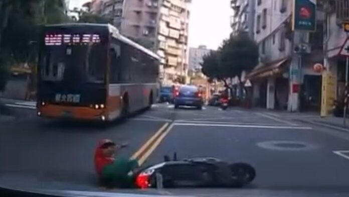 【Lai傳媒、記者爆料網/莫沛宇/新北報導】新北市中和區圓通路一帶,日前發生1起驚險的交通事故。65歲林姓婦人騎乘機車行經圓通路時,與同向自小客車發生擦撞,林婦當場連人帶車重摔倒地,險些遭對向公車輾過。只是林婦因駕照早已被註銷,心虛之下顧不得身上擦傷,竟牽起機車直接肇事逃逸。警方獲報後調閱監視器以車追人,通知林婦到案說明,除針對其無照駕駛依法開出高額罰單外,也當場將機車移置保管。