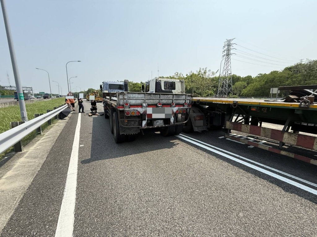 員警抵達國道1號運將肢體衝突地點調查處理。翻攝畫面