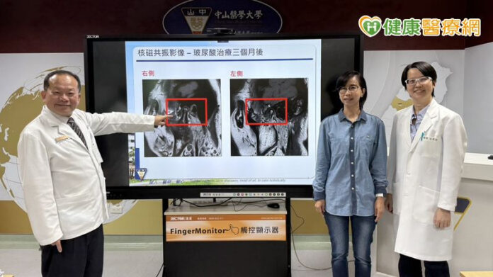 在治療方面,呂明怡醫師指出,臨床一般會先採取保守治療,包括藥物控制與配戴咬合板等;若後續觀察關節仍有發炎或缺乏潤滑度等問題,部分患者可能需進一步評估玻尿酸注射等微創治療選項,具體治療方案則需依個別情況規劃。除了關節問題,中山附醫智慧賦能中心林志峰主任補充,顳顎關節障礙症候群可能影響多組肌肉,包括顳肌、咬肌及內外翼肌等,分別負責開口、閉口與下巴各方向移動,物理治療介入選項則包括震波治療、徒手治療、運動伸展訓練等。應對多元且複雜的病因,中山附醫近期也結合口腔醫學、物理治療、影像診斷及心理支持等資源,成立跨專業團隊,提供患者多面向的照護。