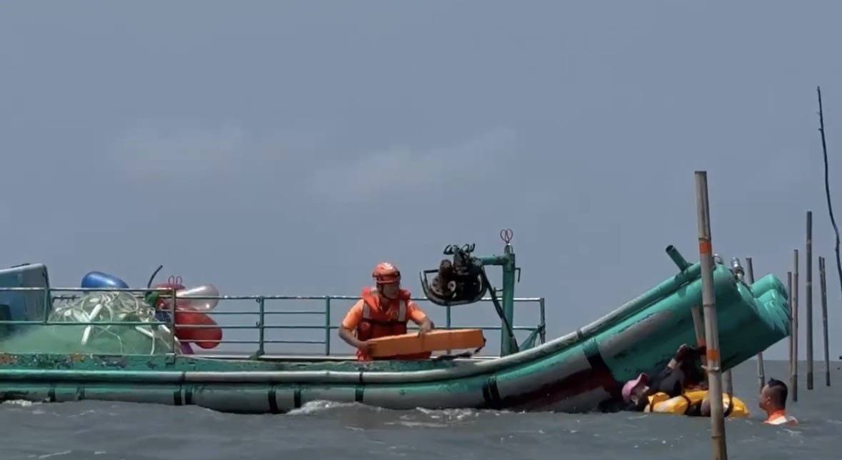 【Lai傳媒、記者爆料網/周庭慶/彰化報導】彰化縣芳苑鄉海邊今(19)日發生採蚵民眾受困事件!上午10時許,海巡署中部分署第三岸巡隊芳苑安檢所人員於芳苑南蚵道執行漲潮前勸離任務時,發現2位民眾受困正攀附於蚵架上載浮載沉,水淹已及腰情況危急,隨即通報王功安檢所派遣救生艇,並通報彰化縣消防局第四大隊芳苑消防分隊及鄰近友好漁民協助救援。