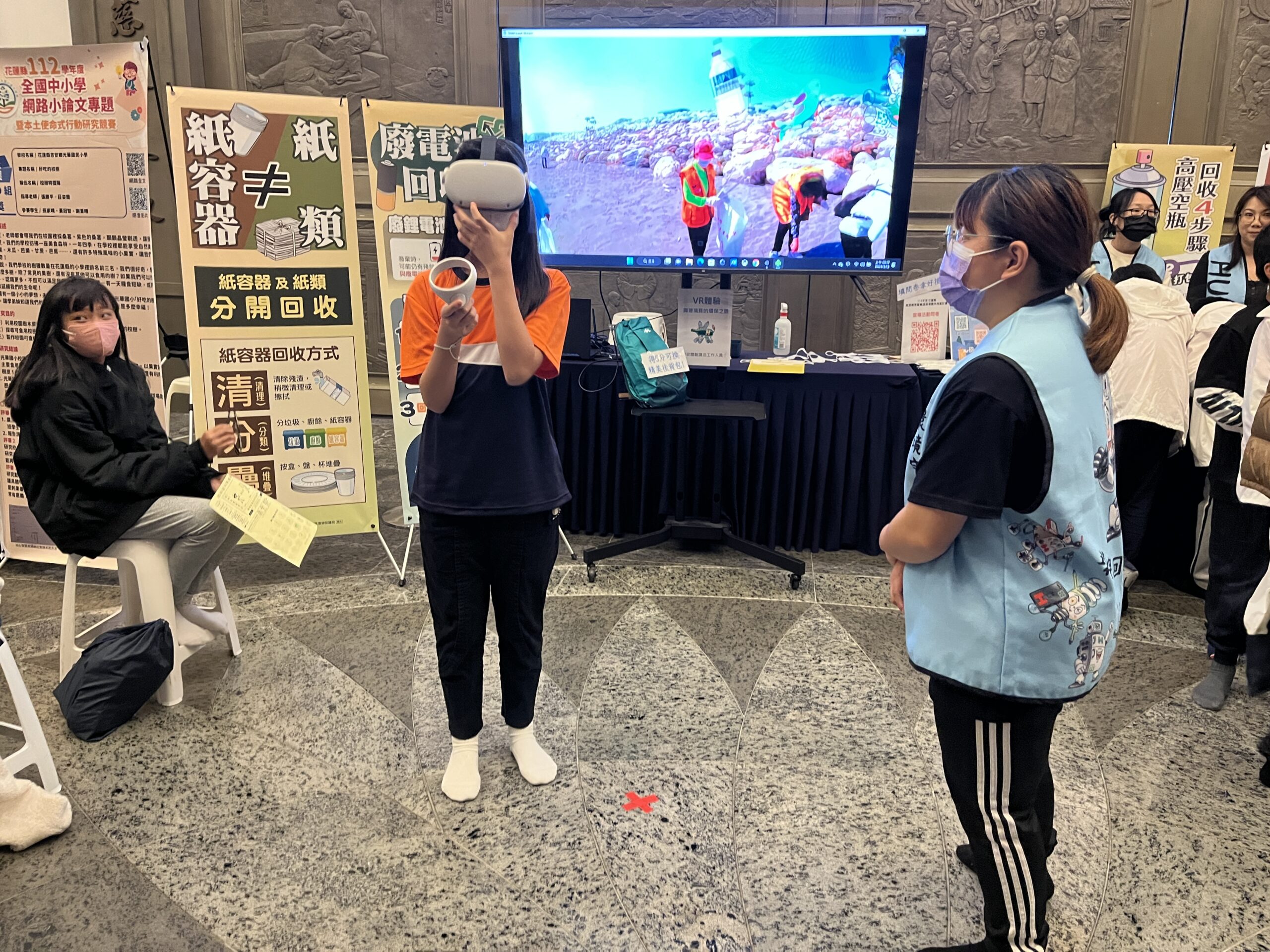 縣市盃環保防災勇士PK賽暨環境教育成果嘉年華日前在花蓮靜思堂登場,機關、企業及民間團體踴躍參與,除了透過互動攤位與科技展示外,花蓮縣環境保護局同步設置VR體驗宣導,讓參與比賽的師生及民眾於沉浸式互動中,學習垃圾分類與資源回收觀念。