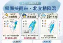周二(4/21)因為有點東北風,桃園以北及宜蘭氣溫略降,但仍有26、27度,其他地方的氣溫則無福感受。離島部分,金門、馬祖周一天氣穩定,但周二開始雲增、偶有短暫陣雨。