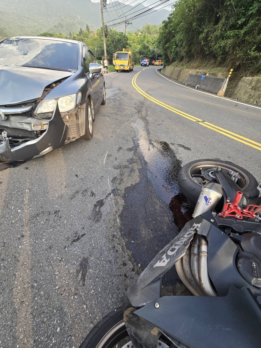 中埔分局表示,4月19日下午3時28分,謝姓男子(31歲)騎紅牌大型重機車沿台3線(南往北方向)行駛,途經353.5公里處失控,駛入對向車道,與對向魏男(43歲)所駕駛之自小客車對撞,造成謝男頭部、身體及四肢皆嚴重擦挫傷,經救護車送醫院急救仍傷重不治;另魏男未受傷。