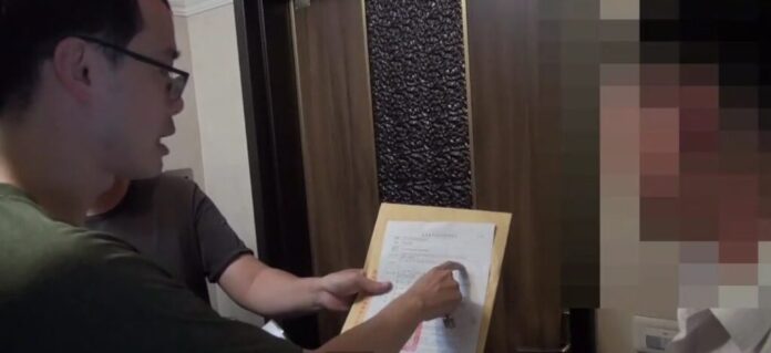辦案人員逮捕替詐團詐騙還收10%回扣的羅姓地政士到案。翻攝畫面