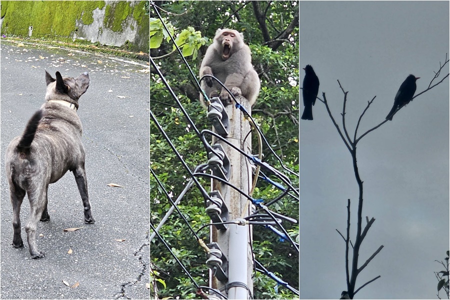 此時,枝頭上的兩隻小鳥就像看完一場狗猴對峙的好戲,依然吱吱喳喳的輕唱著屬於牠們的歌曲呢!(本文作者∕資深媒體人:温富振)