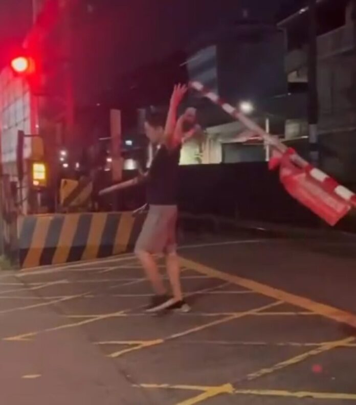 男子抬起柵欄大剌剌闖平交道。翻攝畫面