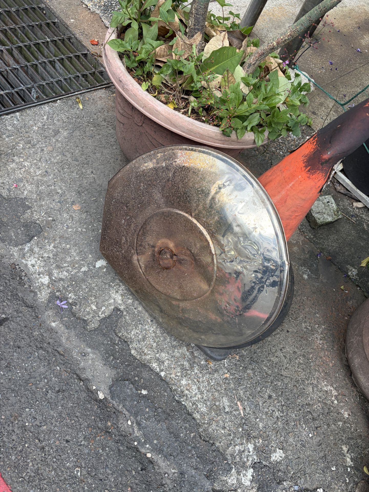 從天而降砸傷一對夫妻的香爐蓋。翻攝畫面