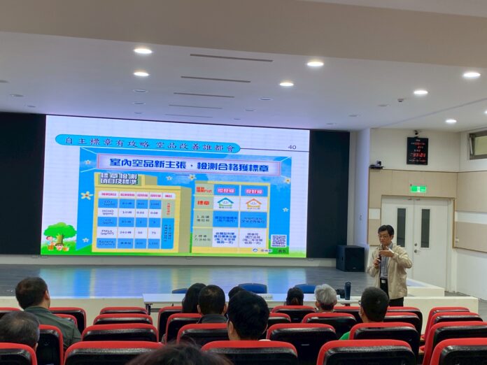許文昌博士針對室內空氣品質自主管理標章及法規說明。(圖∕花蓮縣環保局提供)