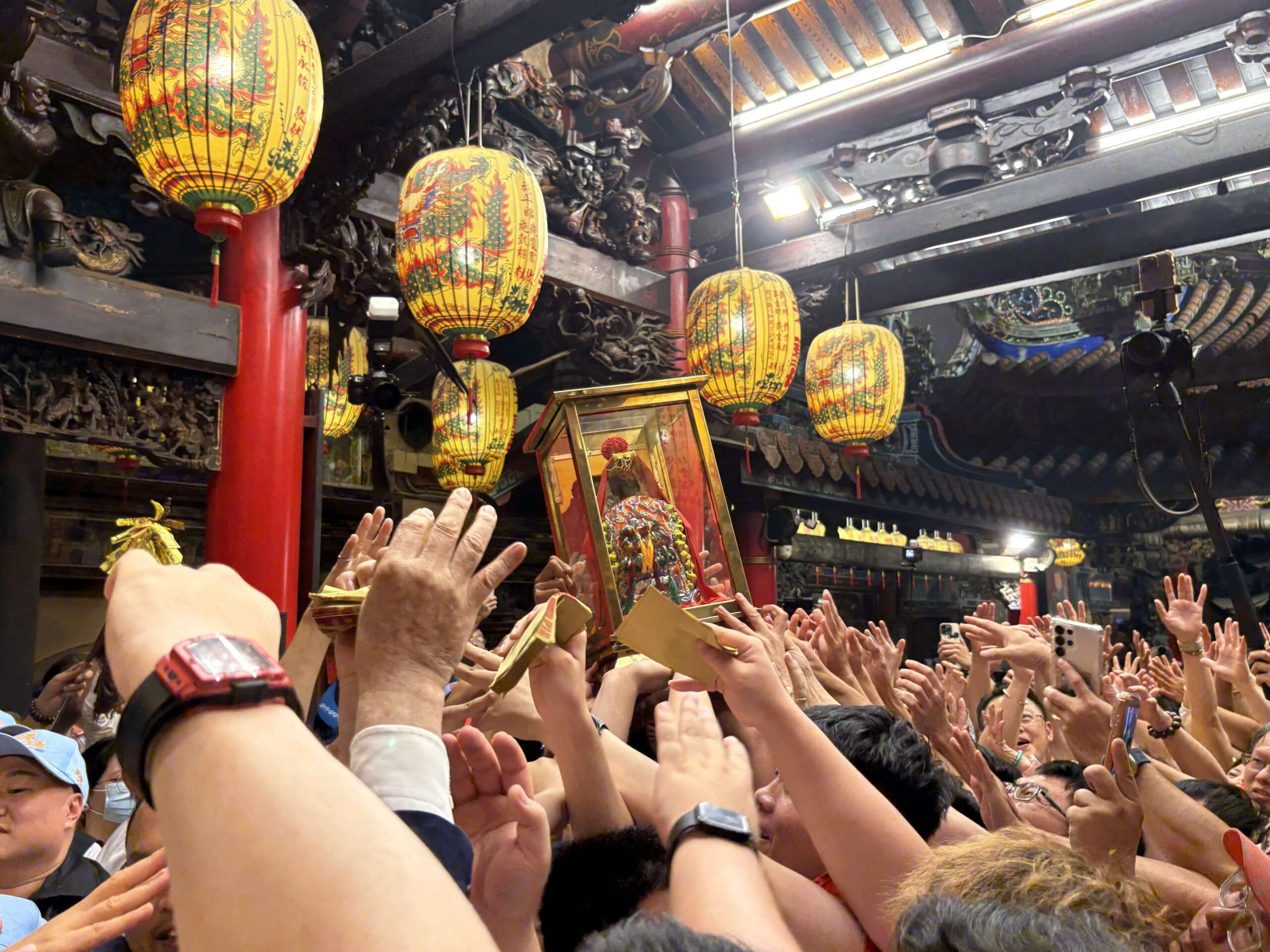 ▲大批信徒爭相觸摸媽祖金身。(圖/嘉義縣政府提供)