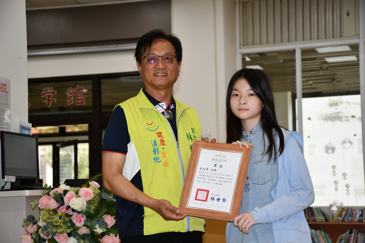 ▲林市長於開幕典禮中頒發感謝狀給每位同學,由莊若希小朋友代表受獎。(圖/記者蕭麗鳳攝)