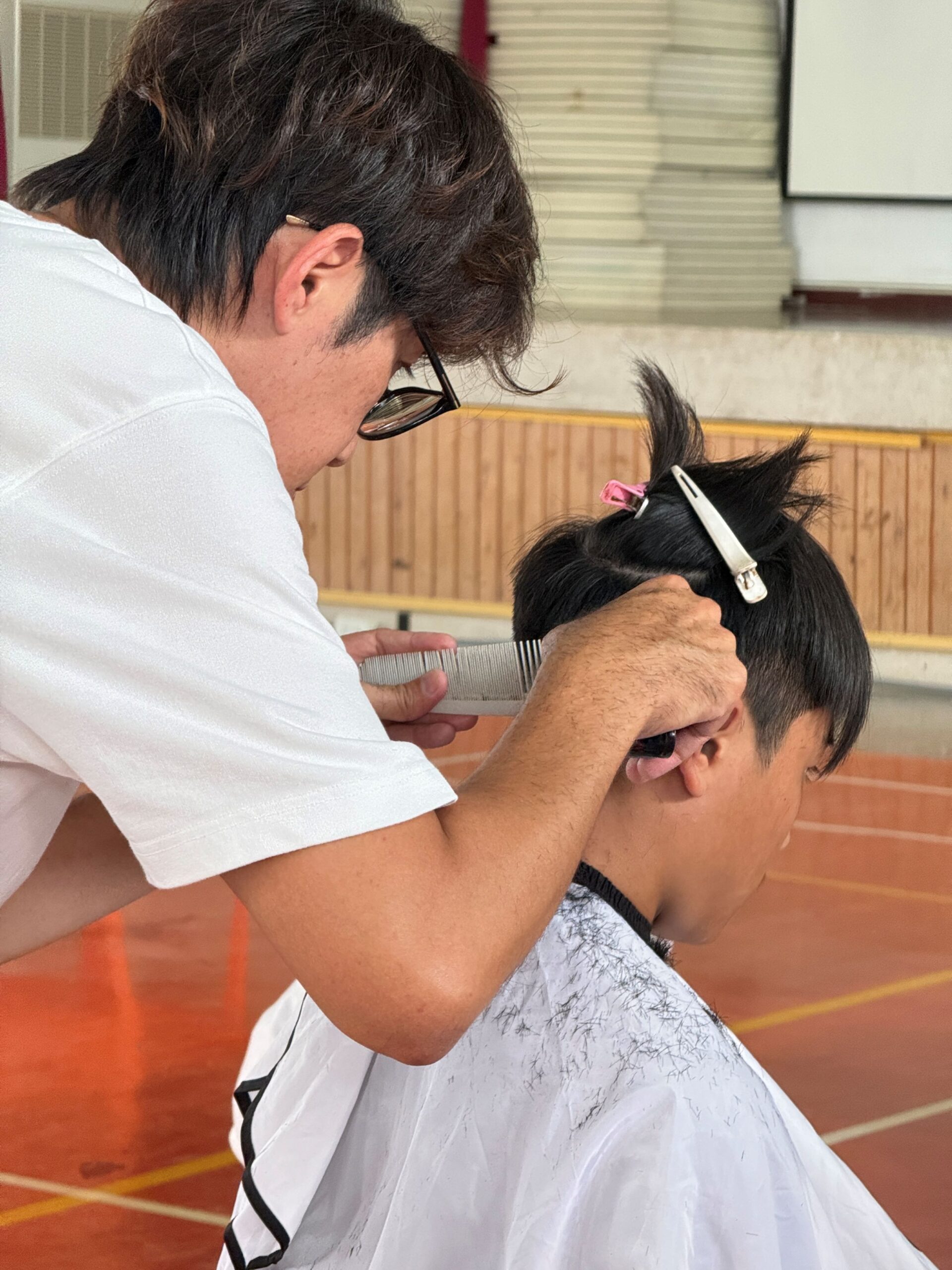 ▲加幕秀團隊進行公益義剪服務,為學童整理儀容,傳遞溫暖關懷。(圖/記者邱猷權攝)