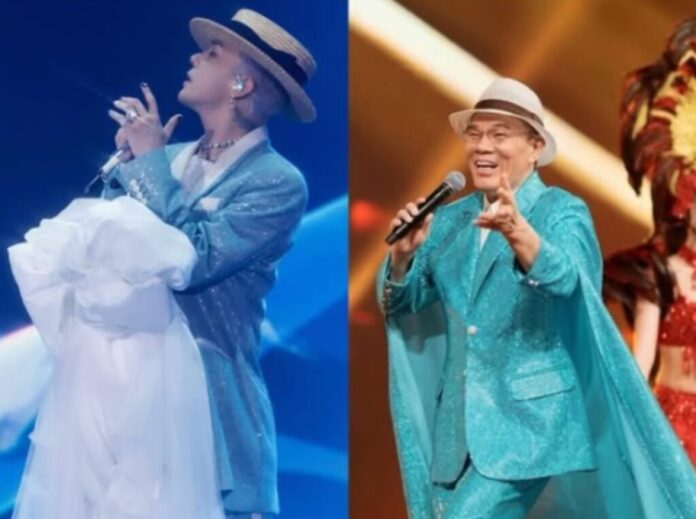 從畫面來看,G-Dragon此次舞台服裝以亮片元素打造華麗感,再以草帽點綴整體造型;而陳雷多年來的招牌形象,同樣以鮮豔西裝搭配帽款聞名,風格辨識度極高。兩者在配色與配件上的巧合,也讓網友直呼「根本跨時空撞衫」。