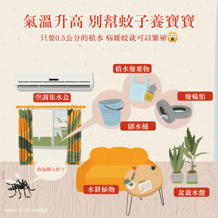 今年嘉義市登革熱雖無確定病例,但隨著雨季即將到來,提醒民眾注意登革熱疫情風險,落實巡、倒、清、刷,「巡」就是巡視周圍環境;「倒」就是倒掉積水容器;「清」就是清除廢棄容器;「刷」就是刷洗容器內壁清除蟲卵,只要大家做好孳生源清除,就可以阻斷登革熱病毒的傳播。