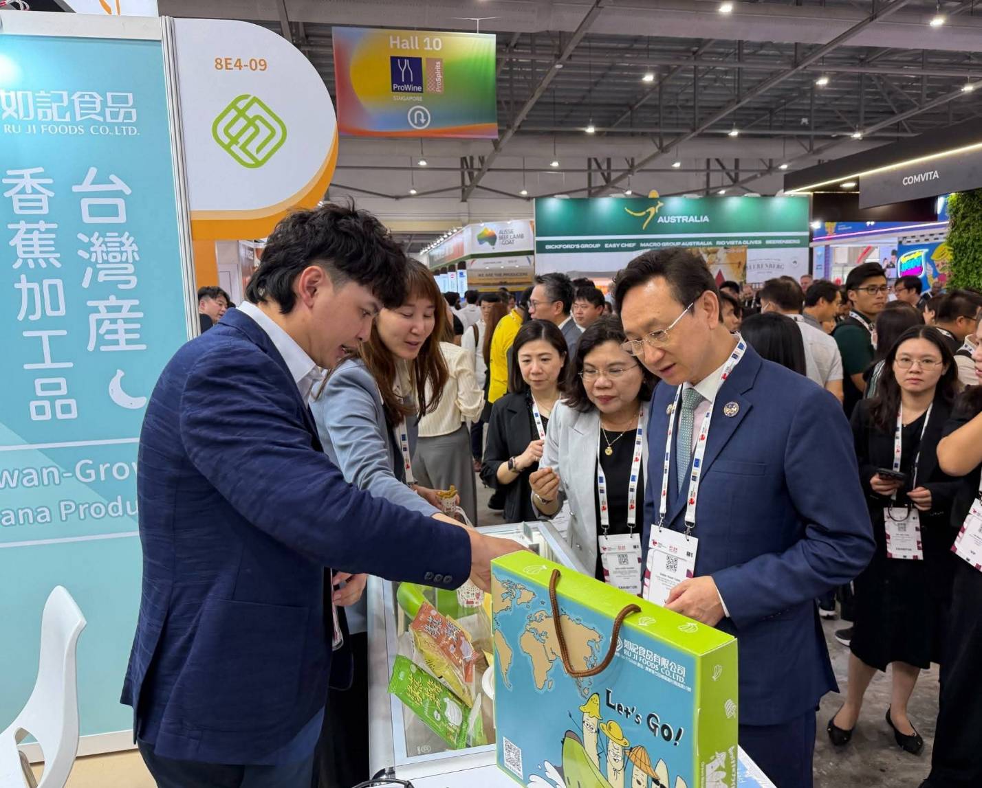 展會期間,多位重要貴賓接力到訪關心。第一天由駐新加坡辦事處吳文齡公使偕同外貿協會林正大副處長,以及屏東工策會總幹事張菽蓁一同前往屏東館視察,逐一走訪各參展攤位,了解業者產品特色與拓銷規劃,並給予肯定與鼓勵;第二天駐新加坡代表處童振源大使到場關心,持續與廠商交流互動。童大使表示,台灣農食產品具備品質與創新優勢,透過國際展會的曝光,有助深化與新加坡及東南亞市場的連結;與會貴賓亦一致肯定屏東業者在產品力與品牌力上的表現,並看好未來海外拓展潛力。