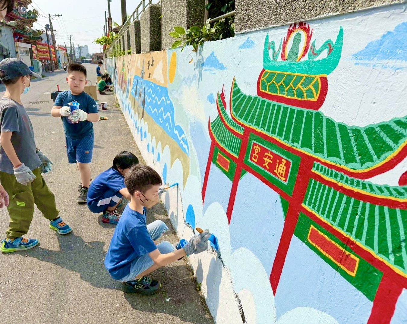 這項名為「咱的蚵仔寮,咱的故事」的社區營造彩繪計畫,由蚵寮國小發起,在校長方珮玲與家長會長王紹銘帶領下,結合師生、家長、校友與在地文史團體力量,透過三週視覺藝術課程接力創作,將通安宮旁海岸線圍牆轉化為長達百米的藝術廊道。參與者從孩童到長者,跨越世代,以畫筆共同描繪家鄉記憶,展現社區凝聚力。