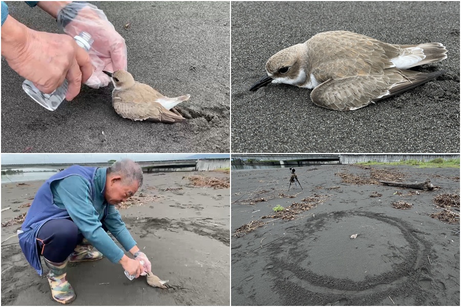 東方環頸鴴落難竹安河口濕地,被好心的鳥類攝影師發現救起。(圖/吳楊欽及陳永琛提供)