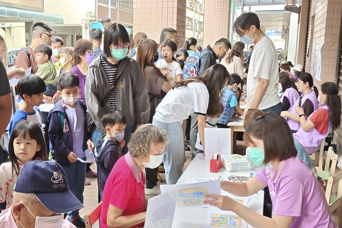 ▲活動現場大排長龍,家長帶著孩子排隊,迫不及待體驗AI科技洗手。(圖/彰基提供)