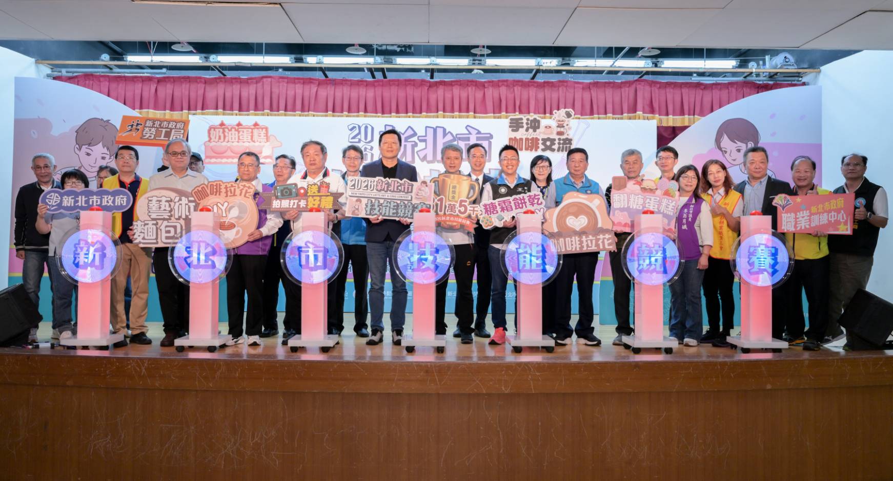 新北市政府勞工局舉辦「2026新北市技能競賽」,(25)日在三重綜合體育館盛大登場,來自全國270位烘焙及咖啡拉花高手同場競技,發揮高超技藝與創意巧思爭奪81萬5,000元獎金。新北市副市長朱惕之也親臨現場,為選手加油打氣,並與小朋友們一起用繽紛糖霜點綴餅乾,勾勒出新北市明亮璀璨的未來。