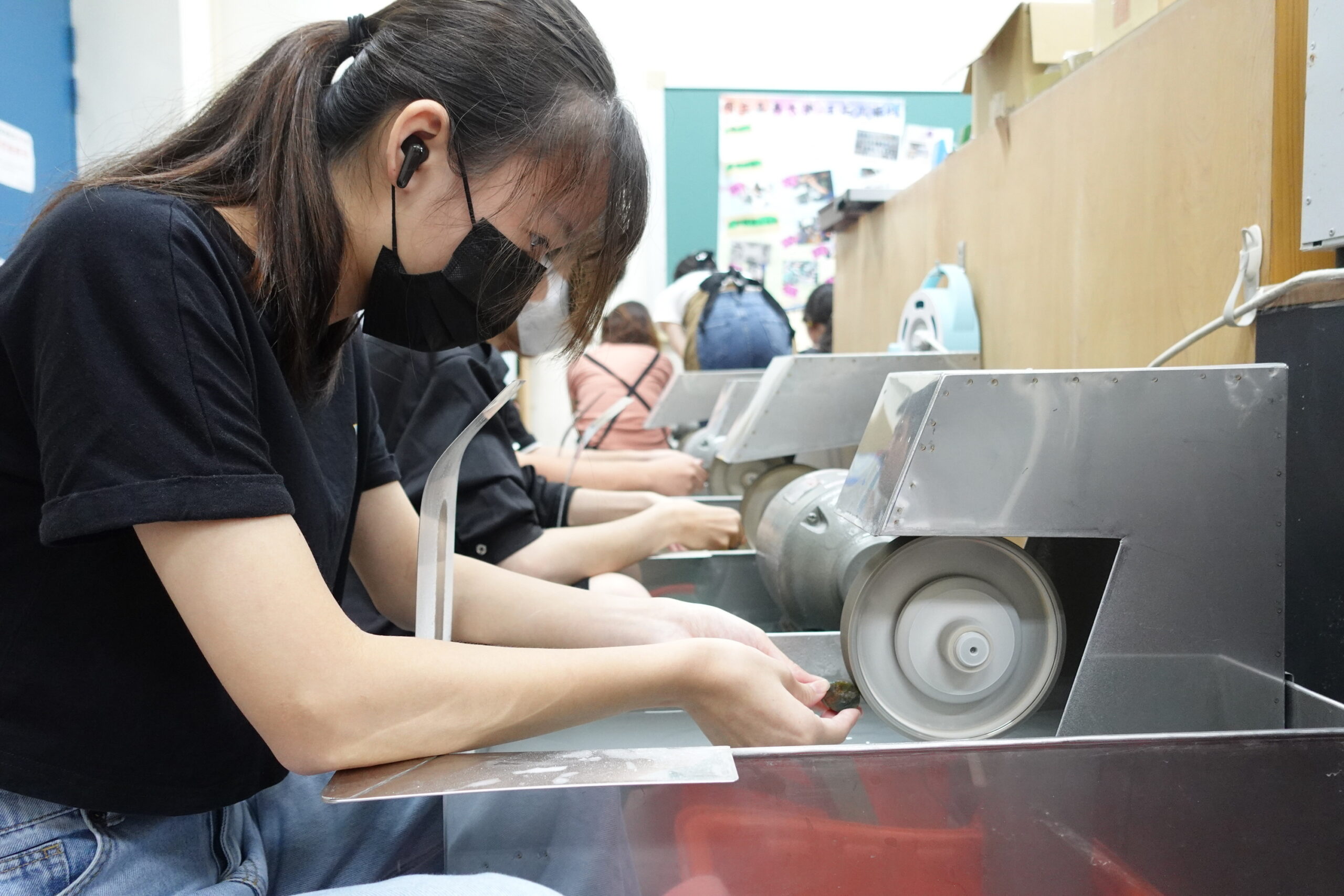 ▲透過拋磨技術練習,學生學習掌握玉石表面處理技巧,體會工藝創作的專注與精準。(圖/嘉義大學提供)