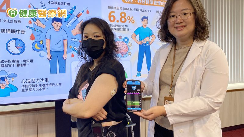 【健康醫療網/記者黃奕寧報導】43歲的余小姐於國中時確診第一型糖尿病,經肝腎移植後,每天仍須施打四次胰島素,血糖偏高時還需追加劑量。頻繁扎指尖監測血糖,導致手指疼痛、指尖角質增厚,夜間監控還會打斷睡眠,長年影響生活品質,並帶來沉重的心理壓力。為解決此困境,臺中榮總內分泌新陳代謝科王俊興主任與蔡易婷醫師改採胰島素幫浦結合連續血糖監測系統,既免去每日多次扎針之苦,糖化血色素更從平均約7.4%,改善至平均約6.8%,達到糖尿病照護建議的控制目標(<7%),有效降低慢性併發症風險,生活品質顯著提升。