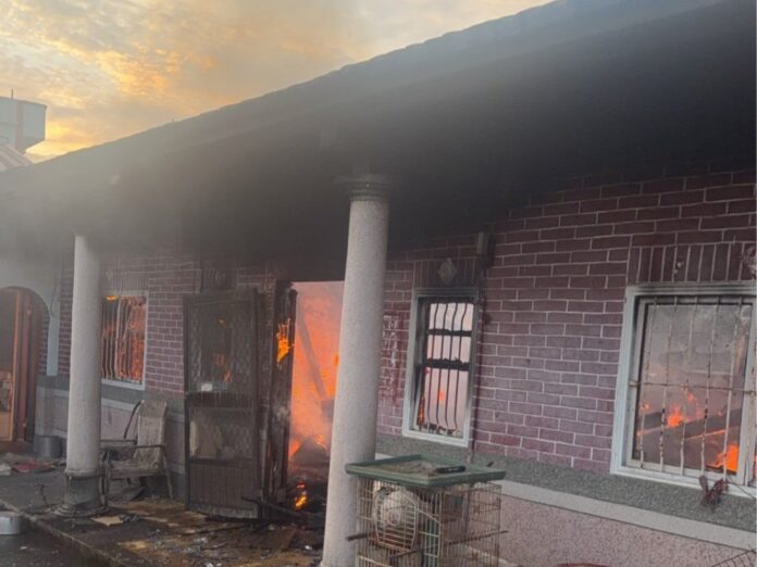 雲林縣消防局5時18分獲報,斗六市湖山路95號發生平房住宅火警,初步研判為二級火災,立即派遣斗六、公園、古坑、林內分隊及第一大隊人車前往搶救,現場由第一大隊副大隊長張哲彬指揮,共計出動各式消防車輛11部,消防人員21名前往灌救。