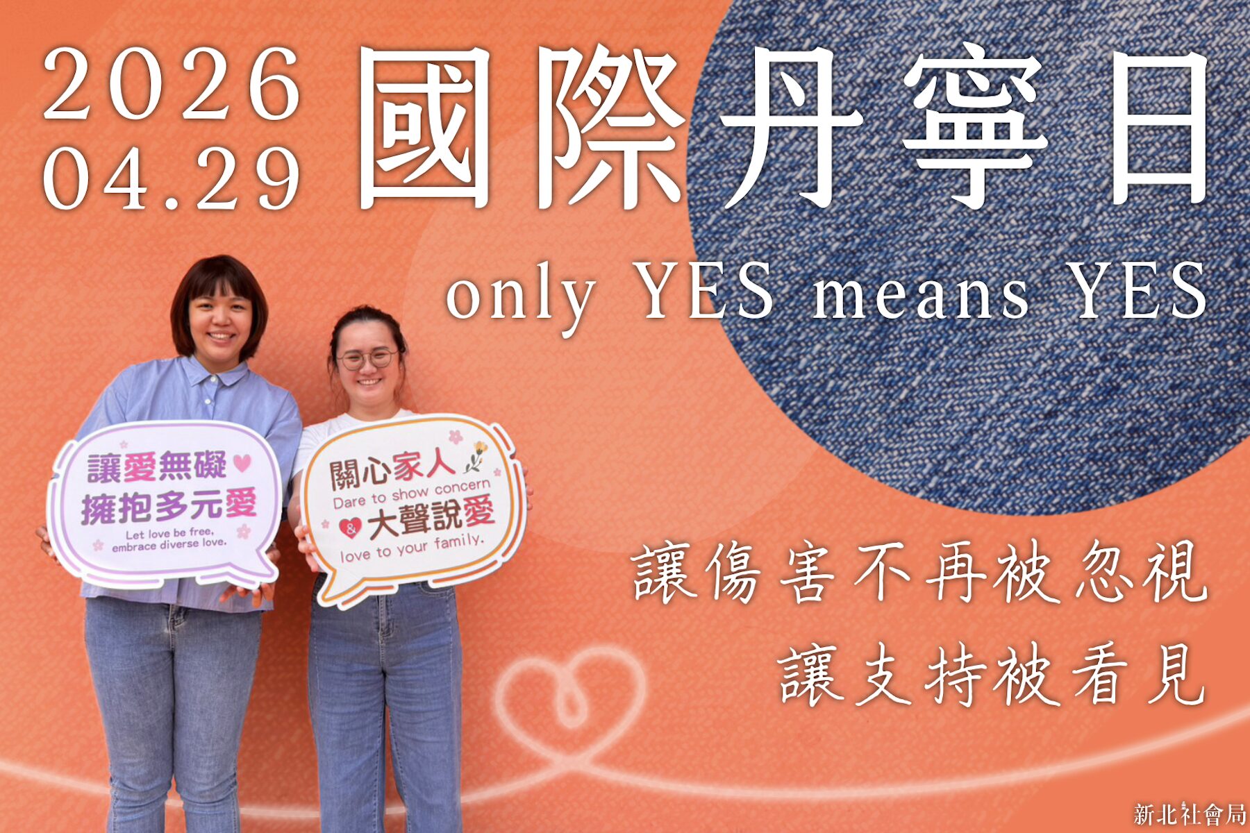 ▲丹寧日以穿上牛仔褲,表達支持性侵害倖存者,讓傷害不再被忽視、讓支持被看見。(圖/新北市社會局 提供)