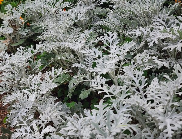 公園處表示,這季的草花配置以銀葉菊及五彩石竹為主要視覺基調。銀葉菊以其細緻柔軟的銀白色葉片,呈現出低調而優雅的質感,在陽光照射下泛出淡淡光澤,為整體景觀鋪陳出清新明亮的底色;五彩石竹則以紅、粉、白等多樣花色點綴其中,花形精巧且開花整齊,形成活潑且富節奏感的色彩律動。兩者相互搭配,營造出冷暖色調交織的視覺層次,使仁愛路沿線在行車與步行視角中皆呈現豐富且連續的景觀變化。